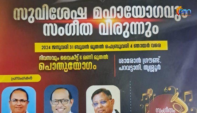 ശാരോൺ ഫെല്ലോഷിപ്പ് ചർച്ച് തൃശൂർ റീജിയൻ കൺവൻഷൻ നാളെ ആരംഭിക്കും