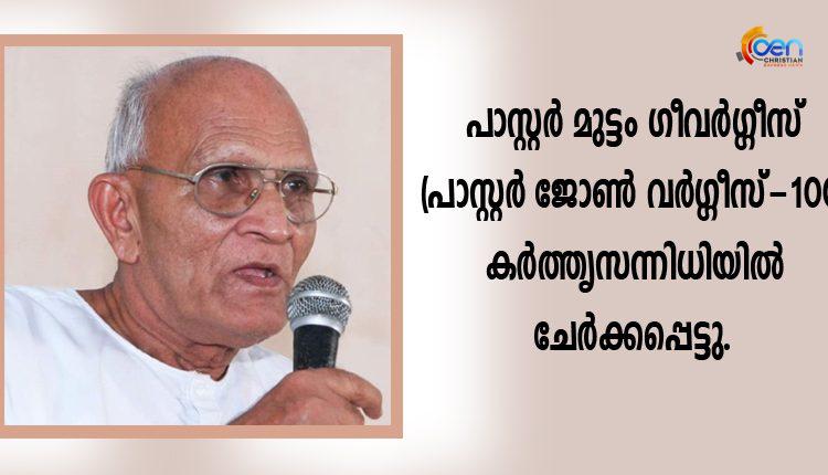 പാസ്റ്റർ മുട്ടം ഗീവർഗ്ഗീസ് (പാസ്റ്റർ ജോൺ വർഗ്ഗീസ്-100) കർത്തൃസന്നിധിയിൽ ചേർക്കപ്പെട്ടു.