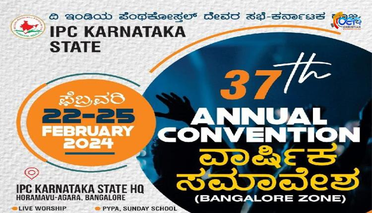 ബെംഗളൂരു: ഇന്ത്യാ പെന്തെക്കൊസ്ത് ദൈവസഭ (ഐപിസി ) കർണാടക സ്റ്റേറ്റ് 37-ാമത് വാർഷിക കൺവൻഷൻ( ബാംഗ്ലൂർ സോൺ) ഫെബ്രുവരി 22 മുതൽ 25 വരെ ഹൊറമാവ് അഗര ഐപിസി ഹെഡ്ക്വാർട്ടേഴ്സ് ഹാളിൽ നടക്കും. വ്യാഴാഴ്ച വൈകിട്ട് 6ന് സ്റ്റേറ്റ് പ്രസിഡൻറ് പാസ്റ്റർ കെ.എസ്. ജോസഫ് കൺവൻഷൻ ഉദ്ഘാടനം ചെയ്യും.