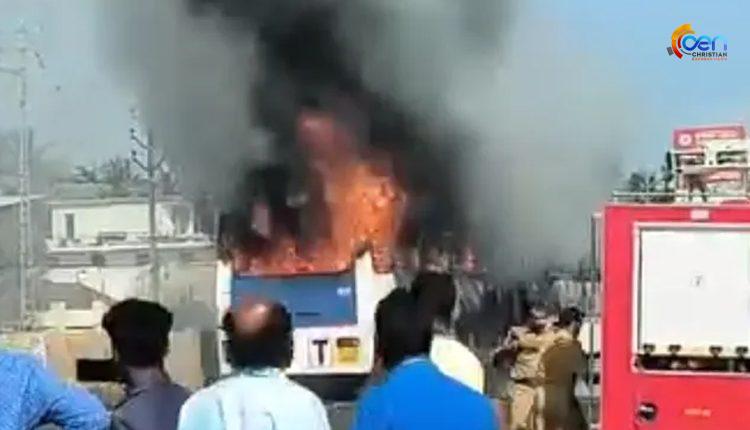 ബസ് പൂർണമായി കത്തിനശിച്ചു.തീപടരും മുൻപ് യാത്രക്കാരെ പുറത്തിറക്കിയതിനാൽ ആർക്കും പരുക്കില്ല.ഓടിക്കൊണ്ടിരുന്ന ബസ്സിന്റെ മധ്യഭാഗത്തും പുറകിലും തീ ആളിപടരുകയായിരുന്നു.