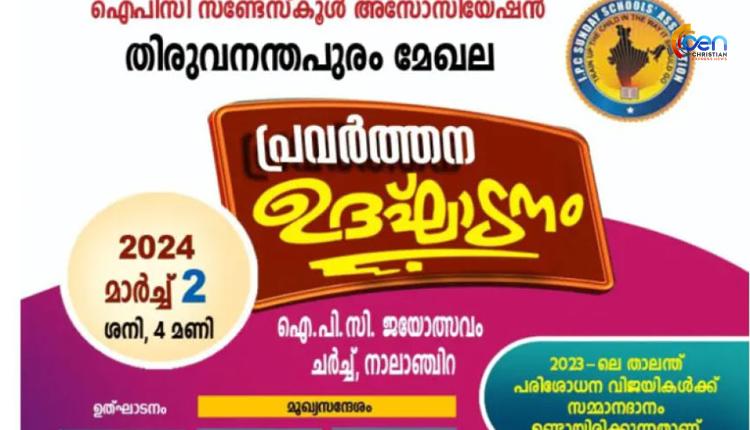 ഐ.പി.സി സണ്ടേസ്കൂൾ അസോസിയേഷൻ തിരുവനന്തപുരം മേഖല പ്രവർത്തന ഉദ്ഘാടനം 2024 മാർച്ച് 2 ന്