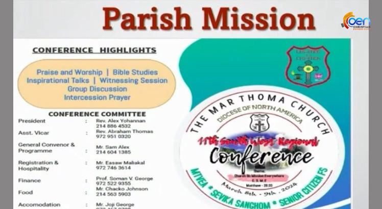 മാർത്തോമാ ഭദ്രാസനം സൗത്ത് വെസ്റ്റ് റീജിയൻ പാരിഷ് മിഷൻ കോൺഫ്രൻസ് മാർച്ച് 8 മുതൽ ഡാളസ്സിൽ