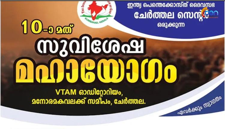 ഐ.പി.സി ചേർത്തല സെൻ്റെർ 10 -ാം മത് വാർഷിക സുവിശേഷ മഹായോഗം ഏപ്രിൽ 12 മുതൽ
