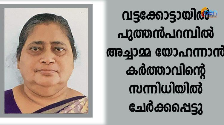 വട്ടക്കോട്ടായിൽ പുത്തൻപറമ്പിൽ അച്ചാമ്മ യോഹന്നാൻ കർത്താവിന്റെ സന്നിധിയിൽ ചേർക്കപ്പെട്ടു