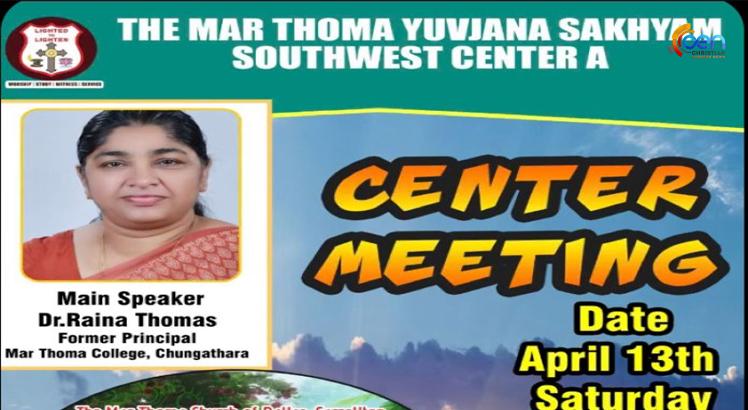 മാർത്തോമ്മാ യുവജന സഖ്യം സൗത്ത് വെസ്റ്റ് സെന്റർ മീറ്റിങ് 13ന്