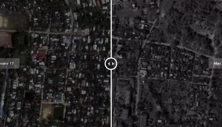 പ്രദേശത്തിൻ്റെ സാറ്റലൈറ്റ് ചിത്രങ്ങള് പരിശോധിച്ച അന്താരാഷ്ട്ര മാധ്യമങ്ങള് നഗരത്തെ വന് തീപിടുത്തം വിഴുങ്ങിയതായും തീ ഇനിയും കെട്ടിട്ടില്ലെന്നും റിപ്പോര്ട്ട് ചെയ്തു. രാജ്യത്തെ റോഹിങ്ക്യകള്ക്കെതിരെ സൈന്യം വളരെക്കാരലമായി തുടരുന്ന അതിക്രമങ്ങളടെയും നിര്ബന്ധിത കുടിയിറക്കലിൻ്റെയും തുടര്ച്ചയാണ് പുതിയ സംഭവ വികാസങ്ങള്. 2021 ഫെബ്രുവരിയില് അട്ടിമറിയിലൂടെ അധികാരം പിടിച്ചെടുത്തതു മുതല് കനത്ത ആക്രമണമാണ് സാധാരണക്കാര്ക്ക് നേരെ സൈന്യം അഴിച്ചുവിടുന്നുവെന്നത്.