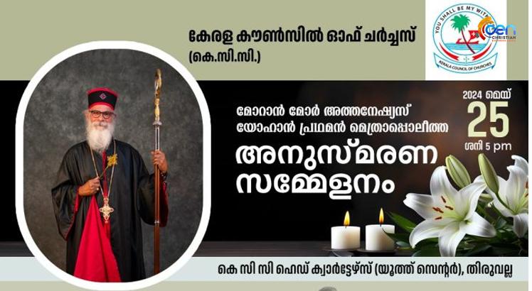 കേരളാ കൗണ്സില് ഓഫ് ചര്ച്ചസിന്റെ നേതൃത്വത്തില് മാര് അത്തനേഷ്യസ് യോഹാന് മെത്രാപ്പോലീത്താ അനുസ്മരണം ഇന്ന്