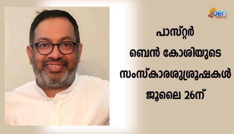 പാസ്റ്റർ ബെൻ കോശിയുടെ സംസ്കാര ശുശ്രൂഷകൾ ജൂലൈ 26ന്