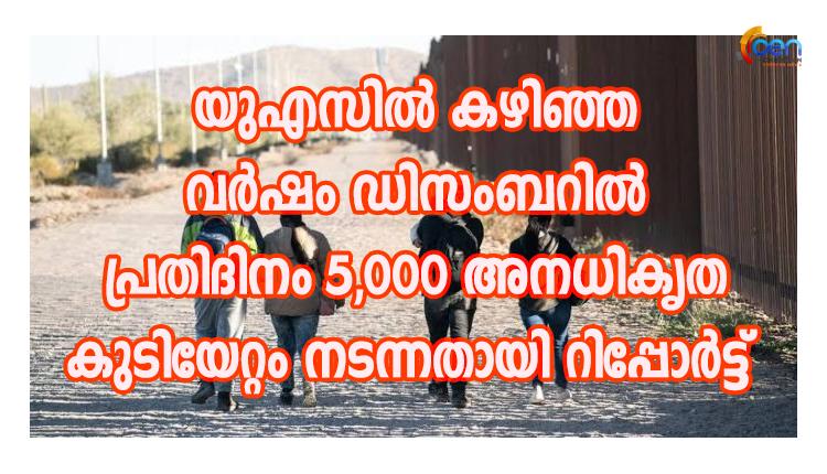 യുഎസിൽ കഴിഞ്ഞ വർഷം ഡിസംബറിൽ പ്രതിദിനം 5,000 അനധികൃത കുടിയേറ്റം നടന്നതായി റിപ്പോർട്ട്.