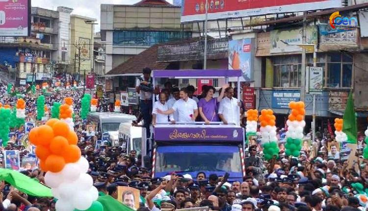 കൽപറ്റ: പ്രിയങ്ക ഗാന്ധിയുടെ കന്നിയങ്കം ആഘോഷമാക്കാൻ വയനാട്ടിലെ കോൺഗ്രസ് പ്രവർത്തകർ. വമ്പൻ റോഡ് ഷോയോടെ പ്രിയങ്ക ഗാന്ധി നാമനിർദേശ പത്രിക സമർപ്പിച്ചു. റോഡ് ഷോയ്ക്കായി പ്രിയങ്കയും രാഹുലും സോണിയയും എത്തിയിരുന്നു. വെയിലും ചൂടും വകവയ്ക്കാതെ സ്ത്രീകളും കുട്ടികളുമടക്കം നിരവധി പേരാണ് റോഡ് ഷോയിൽ പങ്കെടുക്കാൻ എത്തിയത്. പൂക്കൾ വിതറിയാണ് നേതാക്കളെ പ്രവർത്തകർ സ്വീകരിച്ചത് ‘വയനാടിന്റെ പ്രിയങ്കരി’ എന്ന ബാനറുകളാണ് എല്ലായിടത്തും നിറഞ്ഞത്. നിറഞ്ഞ കരഘോഷത്തോടെയാണ് പ്രിയങ്കയുടെ വാക്കുകൾ വയനാട് കേട്ടത്.