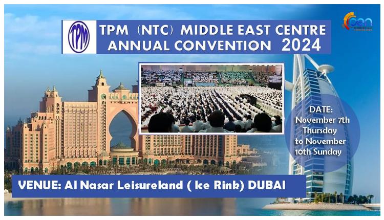 ദുബായ്: മധ്യപൂർവ്വ ദേശത്തെ ഏറ്റവും വലിയ ആത്മീയസംഗമമായ ദി പെന്തെക്കൊസ്ത് മിഷൻ സഭയുടെ (ന്യൂ ടെസ്റ്റ്മെന്റ് ചർച്ച്) മിഡിൽ ഈസ്റ്റ് വാർഷിക സെന്റർ കണ്വന്ഷന് നവംബർ 7 വ്യാഴം മുതല് 10 ഞായർ വരെ ദുബായ് അൽനാസർ ലെയ്സർ ലാൻഡ് (ഐസ് റിങ്ക്) ഹാളിൽ നടക്കും.