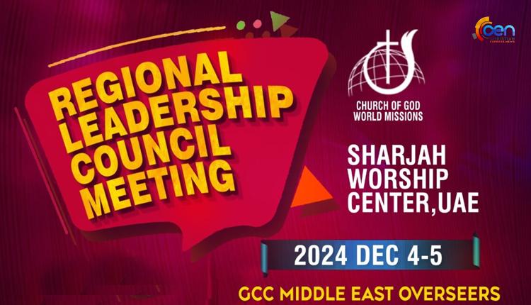 ക്ളീവ്ലാൻഡ് ടെന്നീസി : ചർച്ച് ഓഫ് ഗോഡ് സഭകളുടെ GCC മിഡിൽ ഈസ്റ്റ് റീജിയണിലുള്ള ലീഡർഷിപ് കൗൺസിൽ ഡിസംബർ 4,5 തിയതികളിൽ ഷാർജയിലെ വർഷിപ് സെന്ററിൽ നടത്തപ്പെടും.