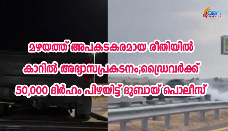 മഴയത്ത് അപകടകരമായ രീതിയിൽ കാറിൽ അഭ്യാസപ്രകടനം; ഡ്രൈവർക്ക് 50,000 ദിർഹം പിഴയിട്ട് ദുബായ് പൊലീസ്