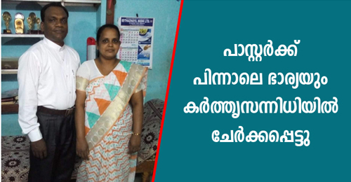 പാസ്റ്റർക്ക് പിന്നാലെ ഭാര്യയും കർത്തൃസന്നിധിയിൽ ചേർക്കപ്പെട്ടു.