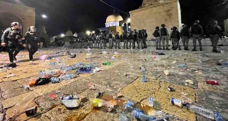 പുണ്യമാസമായ റമദാനിലെ അവസാന വെള്ളിയാഴ്ച ആചരിക്കാന് ആയിരക്കണക്കിന് ആളുകള് തടിച്ചുകൂടിയതിനെത്തുടര്ന്ന് വെള്ളിയാഴ്ച രാത്രിയോടെയാണ് ഇവിടെ സംഘര്ഷം ആരംഭിച്ചത്. സായാഹ്ന നമസ്കാരത്തിനുശേഷം ആയിരക്കണക്കിന് ഇസ്ലാം മതവിശ്വാസികള് കലാപം അഴിച്ചുവിടുകയും, സ്ഥിതിഗതികള് ശാന്തമാക്കാന് ബലം പ്രയോഗിച്ചുവെന്നുമാണ് ഇസ്രായേല് പോലീസ് പറയുന്നത്.