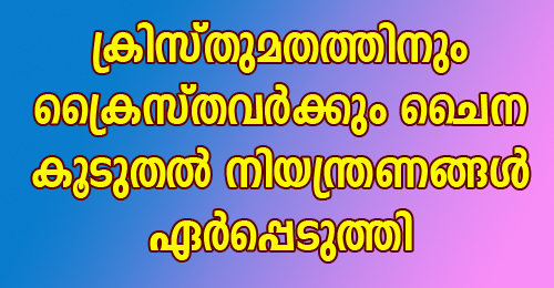 ക്രിസ്തുമതത്തിനും ക്രൈസ്തവർക്കും ചൈന കൂടുതൽ നിയന്ത്രണങ്ങൾ ഏർപ്പെടുത്തി.