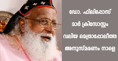 ഡോ. ഫിലിപ്പോസ് മാര് ക്രിസോസ്റ്റം വലിയ മെത്രാപ്പോലീത്ത അനുസ്മരണം നാളെ
