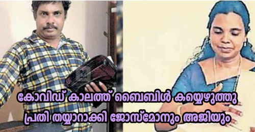 കോവിഡ് കാലത്ത് ബൈബിൾ കയ്യെഴുത്തു പ്രതി തയ്യാറാക്കി ജോസ്മോനും അജിയും