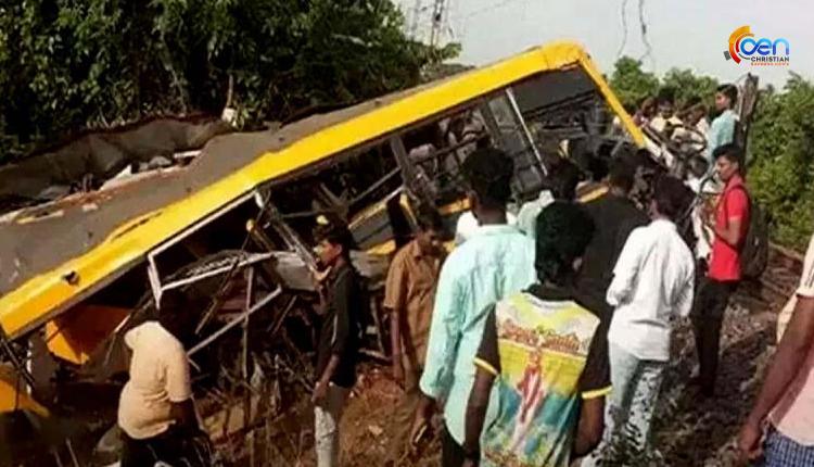 തിരുച്ചെന്തൂരില് നിന്ന് ചെന്നൈയിലേക്ക് വരികയായിരുന്ന മയിലാടുതുറൈ പാസഞ്ചര് ട്രെയിനാണ് സ്കൂള് വാനില് ഇടിച്ചത്. കടലൂര് കൃഷ്ണസ്വാമി മെട്രിക്കുലേഷന് സ്കൂളിലെ വിദ്യാര്ഥികള് സഞ്ചരിച്ചിരുന്ന വാനാണ് അപകടത്തില്പ്പെട്ടത്.