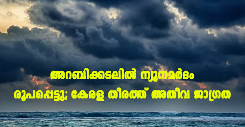 അറബിക്കടലില് ന്യൂനമര്ദം രൂപപ്പെട്ടു; കേരള തീരത്ത് അതീവ ജാഗ്രത
