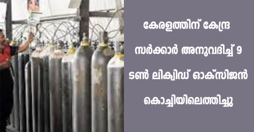 കേരളത്തിന് കേന്ദ്ര സര്ക്കാര് അനുവദിച്ച് 9 ടണ് ലിക്വിഡ് ഓക്സിജന് കൊച്ചിയിലെത്തിച്ചു
