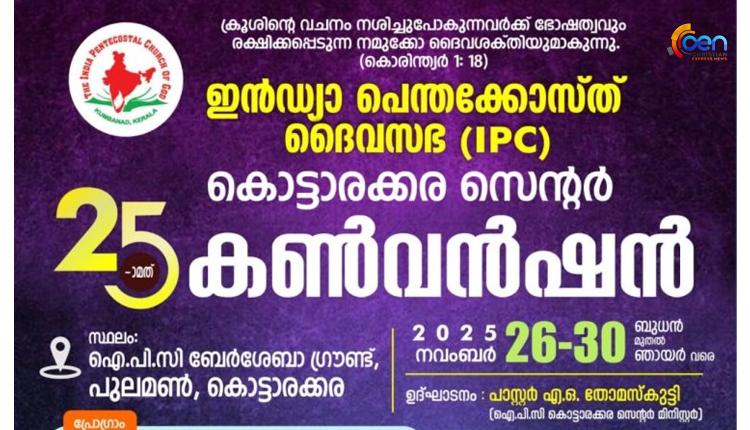 ഐപിസി കൊട്ടാരക്കര സെന്ററിൻ്റെ 25-മത് കൺവെൻഷൻ നവംബർ 26 മുതൽ