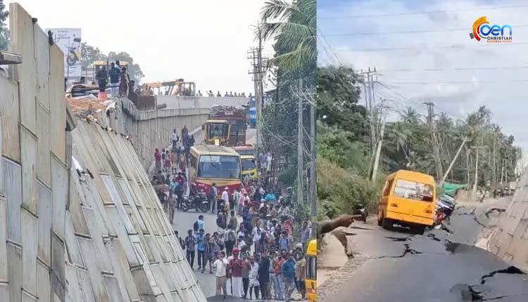 കൊല്ലം കൊട്ടിയത്ത് നിര്മാണത്തിലിരുന്ന ദേശീയ പാത തകര്ന്നു; ഗതാഗത നിയന്ത്രണം