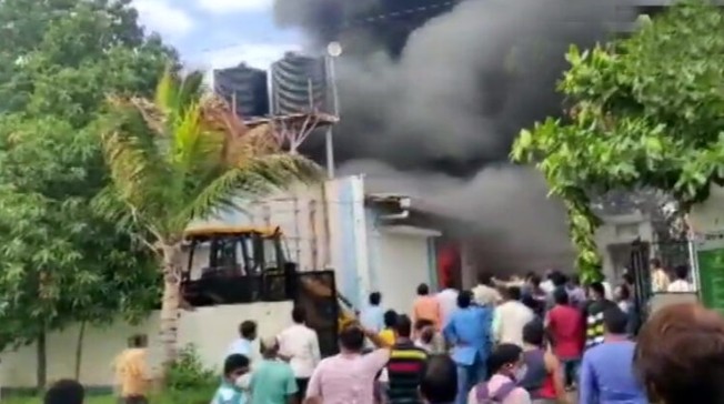 വൈകീട്ട് നാലരയോടെയായിരുന്നു സംഭവം. തീയും പുകയും ഉയരുന്നത് കണ്ട പ്രദേശവാസികളാണ് വിവരം പോലീസിനെ അറിയിച്ചത്. ഫാക്ടറിയിൽ നിർമ്മാണ പ്രവർത്തനങ്ങൾ നടക്കുന്നതിനിടെയാണ് പൊട്ടിത്തെറിയുണ്ടായത്. അതു കൊണ്ടുതന്നെ 30 ലധികം തൊഴിലാളികൾ ഫാക്ടറിയ്ക്കകത്ത് ഉണ്ടായിരുന്നുവെന്നാണ് നിഗമനം. 12 ഓളം പേരെയാണ് ഇനി കണ്ടെത്താൻ ഉള്ളത്. ഇവർക്കായുള്ള തെരച്ചിൽ പുരോഗമിക്കുകയാണ്. എട്ട് ഫയർ ഫോഴ്സ് യൂണിറ്റുകളാണ് രക്ഷാ പ്രവർത്തനങ്ങളിൽ ഏർപ്പെട്ടിരിക്കുന്നത്. തീ നിയന്ത്രണ വിധേയം ആക്കിയിട്ടുണ്ട്.