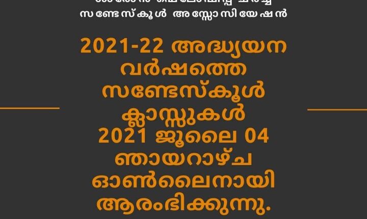 തിരുവല്ല: ശാരോൻ ഫെല്ലോഷിപ്പ് ചർച് സൺഡേ സ്കൂൾ അസോസിയേഷൻ 2021-2022 അധ്യയന വർഷ ക്ലാസുകൾ ജൂലൈ 4ന് ആരംഭിക്കും. ക്ലാസ്സുകൾ ഓണ്ലൈനായി ആയിരിക്കുമെന്ന് ഭാരവാഹികൾ അറിയിച്ചു.