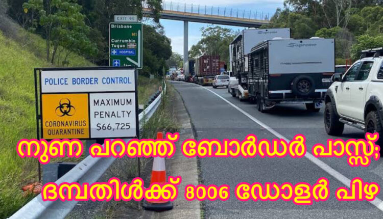 മെൽബണിൽ നിന്ന് ക്വീൻസ്ലാന്റിലെ സൺഷൈൻ കോസ്റ്റിലേക്കെത്തിയ ദമ്പതികൾക്കാണ് 4003 ഡോളർ വീതംപിഴ നൽകേണ്ട സാഹചര്യം വന്നിരിക്കുന്നത്. ഇവരിൽ കൊവിഡ് സ്ഥിരീകരിച്ചത് സംസ്ഥാനത്ത് കടുത്ത ആശങ്കപടർത്തിയതോടെ വ്യാപകമായ പരിശോധനയാണ് ക്യൂൻസിലാൻഡ് നടത്തിയത്. ഇവർക്ക് യാത്രാനിയന്ത്രണങ്ങളിൽ ഇളവുകൾ നൽകിയിരുന്നില്ലെന്ന് സർക്കാർ നേരത്തേ വ്യക്തമാക്കിയിരുന്നു.