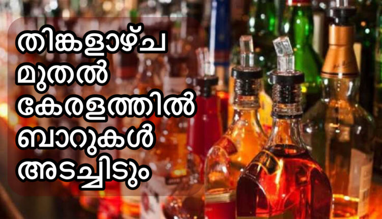 തിങ്കളാഴ്ച മുതല് കേരളത്തിൽ ബാറുകള് അടച്ചിടും