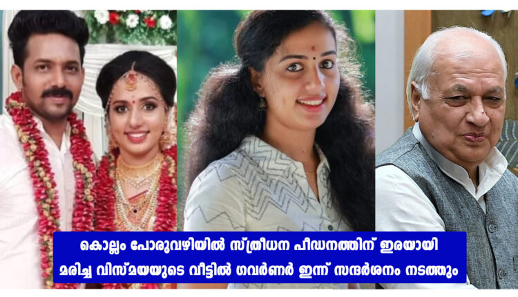 കൊല്ലം പോരുവഴിയില് സ്ത്രീധന പീഡനത്തിന് ഇരയായി മരിച്ച വിസ്മയയുടെ വീട്ടില് ഗവര്ണര് ഇന്ന് സന്ദര്ശനം നടത്തും.